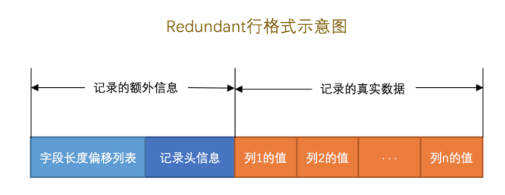- Compact仅存储非NULL变长字段的实际字节长度(逆序排列),redundant存储所有字段偏移地址