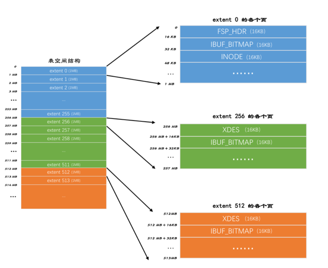 InnoDB 以表空间为抽象层管理数据存储。表空间由多个页(Page) 组成,并引入区(Extent) 和段(Segment) 的概念来优化管理。